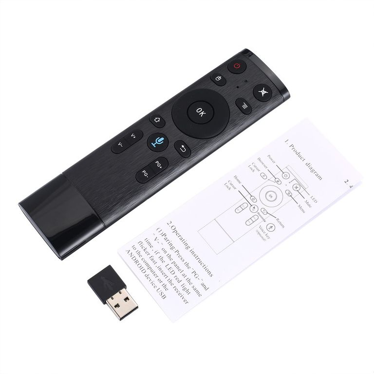 Пульт работает на радиосвязи, не требует специальных драйверов и поддерживается большинством современных устройств, которые могут работать со стандартной USB мышкой или клавиатурой. Для работы необходимо вставить USB радио-передатчик в Android Смарт-приставку,ноутбук, компьютер, и две батарейки AAA в пульт, после чего можно им пользоваться.