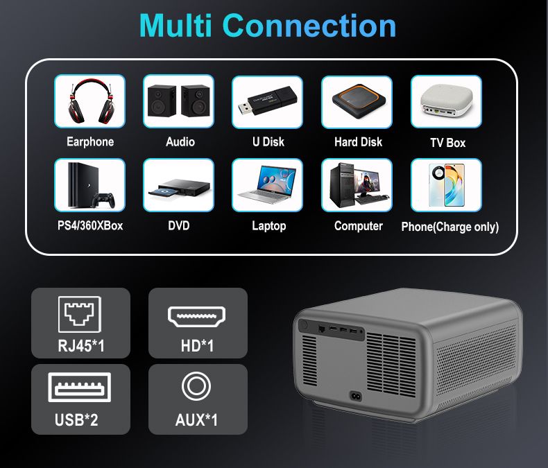 Процессор Huawei HiSilicon 560, графический процессор Mali-G52, оперативная и внутренняя память 3+128 Gb, Bluetooth 5.0 с возможностью подключения наушников и внешнего усилителя, ставят этот проектор в разряд лидеров среди 1LCD проекторов.