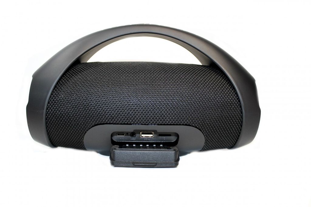 На беспроводной колонке Booms Box Mini Portable Wireless Speaker E10 оборудована удобная пластиковая ручка.