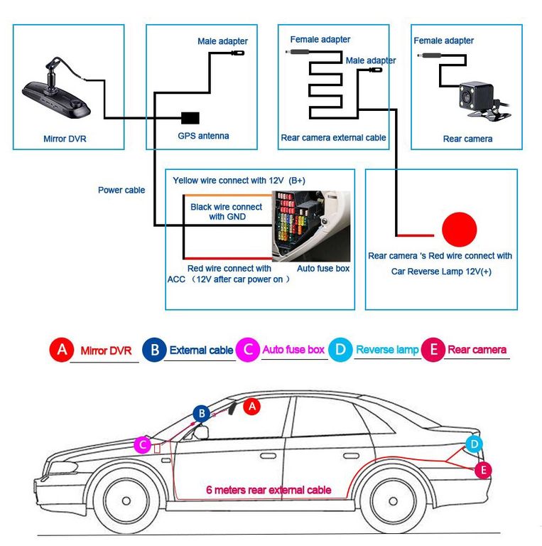К нему можно подключить видеокамеру заднего вида (в комплекте), обе камеры могут работать одновременно.