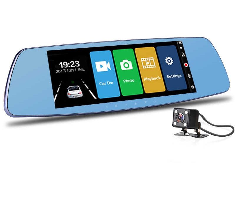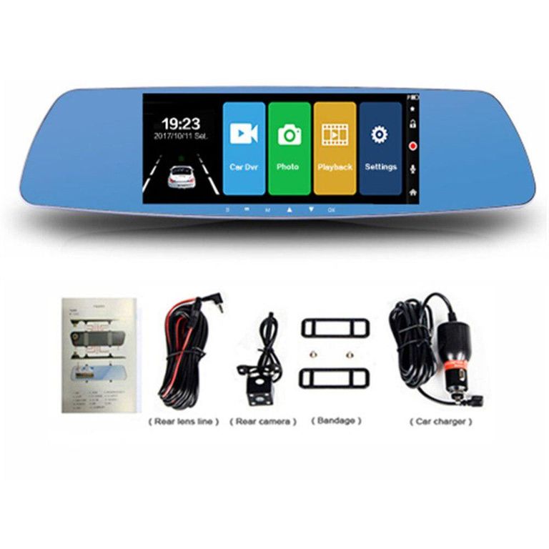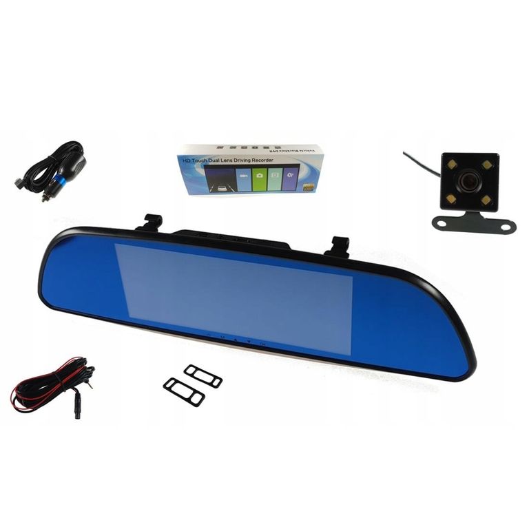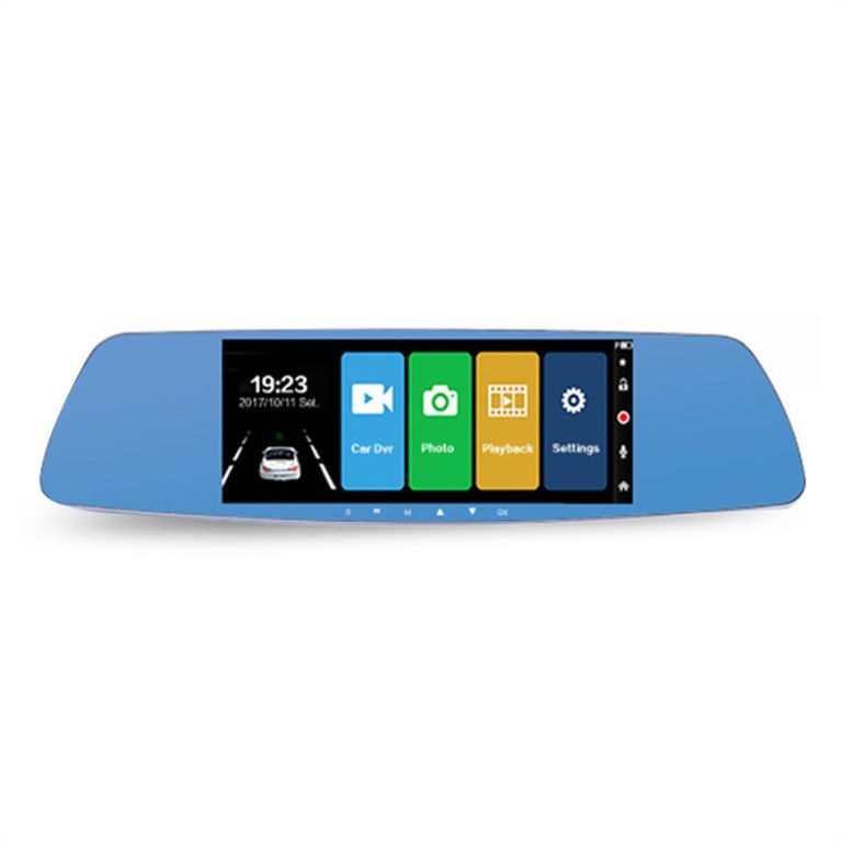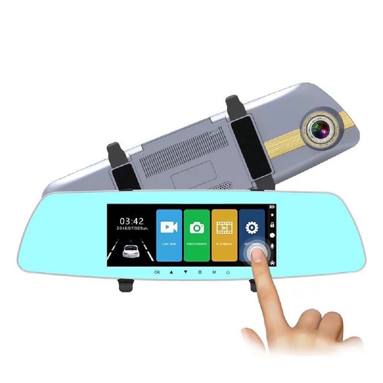 Видеорегистратор--зеркало 7 inches Full-HD выполнен в виде зеркала заднего вида, имеет приятный современный дизайн, 7 дюймовый сенсорный экран и легко монтируется специальными креплениями (находятся в комплекте), на штатное зеркало любого автомобиля.
