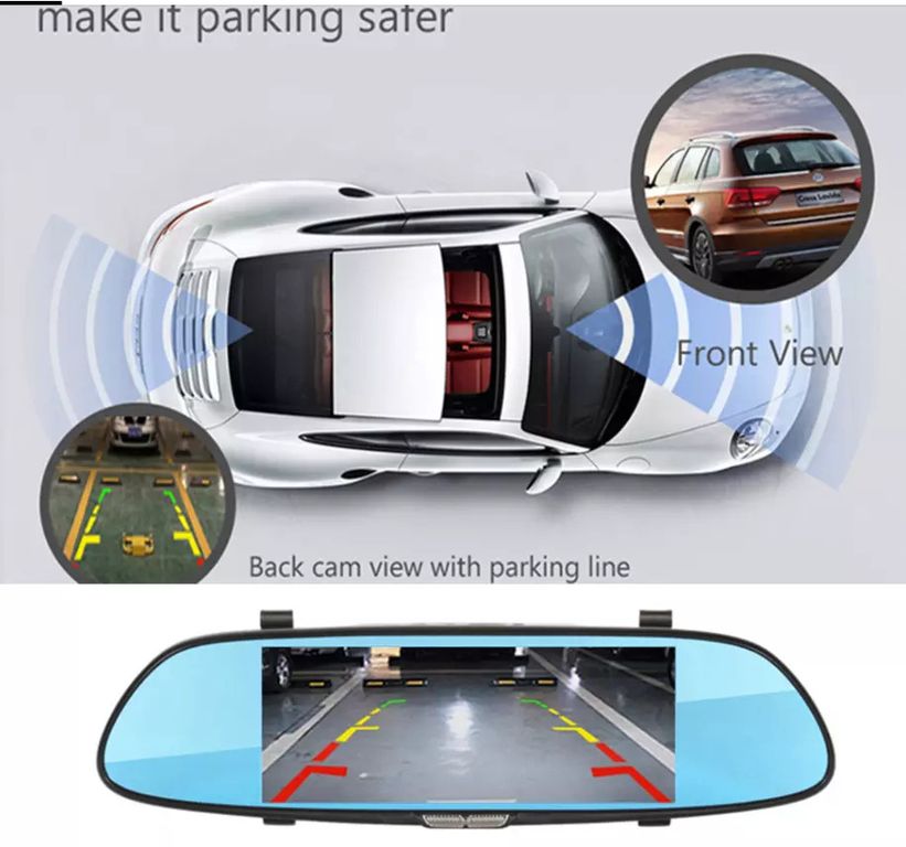 Видеорегистратор--зеркало 7 inches Full-HD различает номерные знаки ближайших автомобилей, запись признается доказательством в суде и других государственных органах.