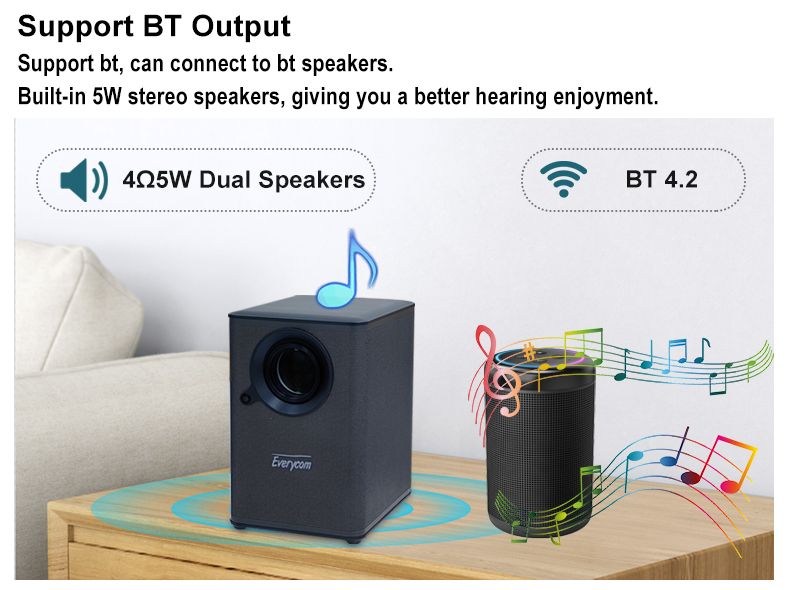 Два динамика общей мощностью 10W позволяют насладиться не только фильмами, но и использовать проектор как Bluetooth-колонку!