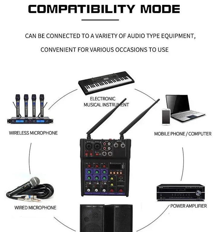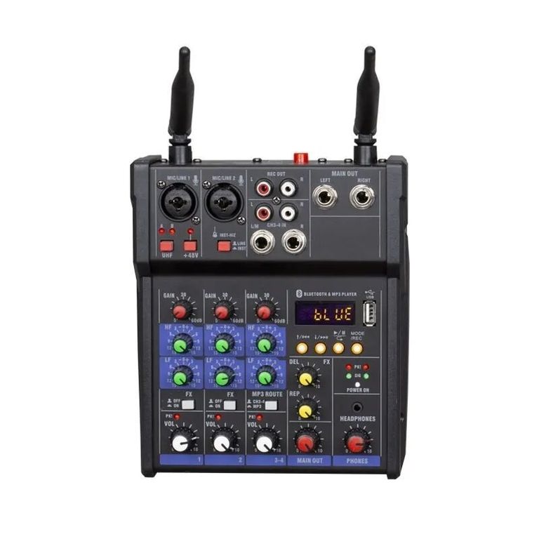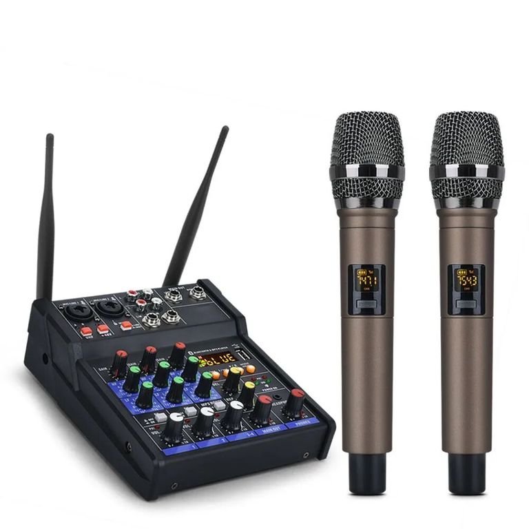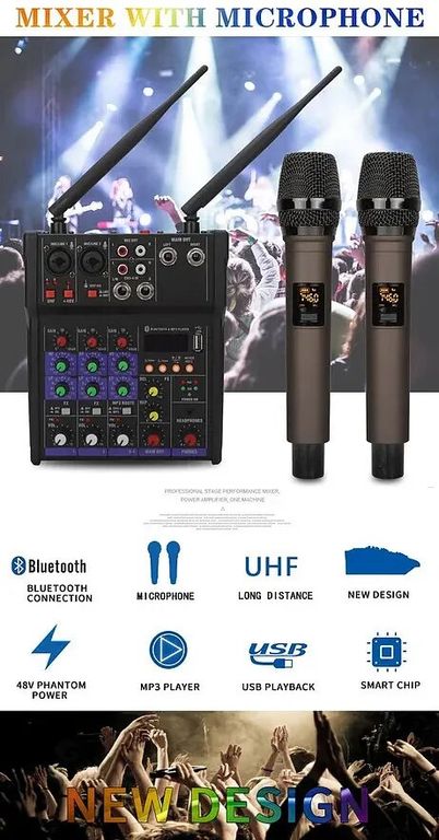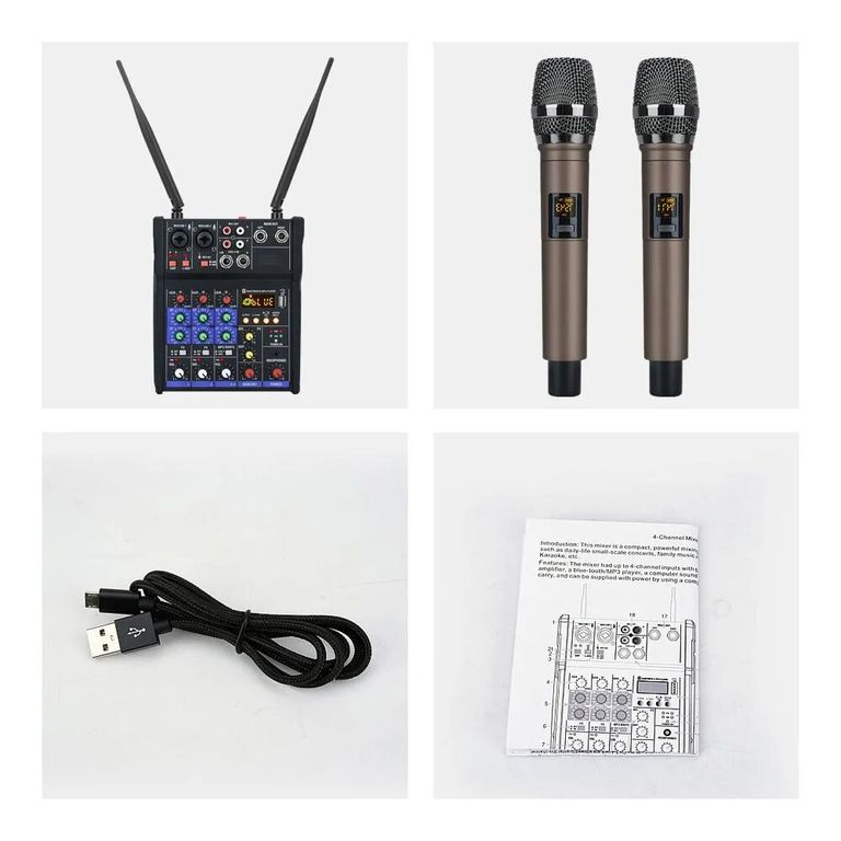 Караоке - микшер с микрофонами KM-4 -- отличный вариант для проведения домашних караоке вечеринок и небольших развлекательных мероприятий. Он микширует музыку минусовок и караоке со звуком двух микрофонов. При этом регулируются высокие и низкие частоты музыкального контента и микрофонов, а также есть различные эффекты эха/реверберации.