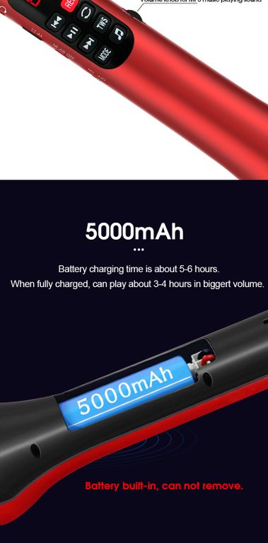 Ёмкость встроенной батареи данного устройства 5000 mAh. Для такой мощности динамика фоновый шум небольшой, т.к. встроен чип понижения фонового шума. По традиции, динамик этого профессионального микрофона находится внизу для улучшения восприятия звучания слушателями. Встроенный DSP чип выстраивает отличную "звуковую сцену".