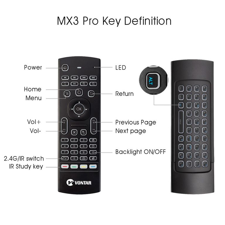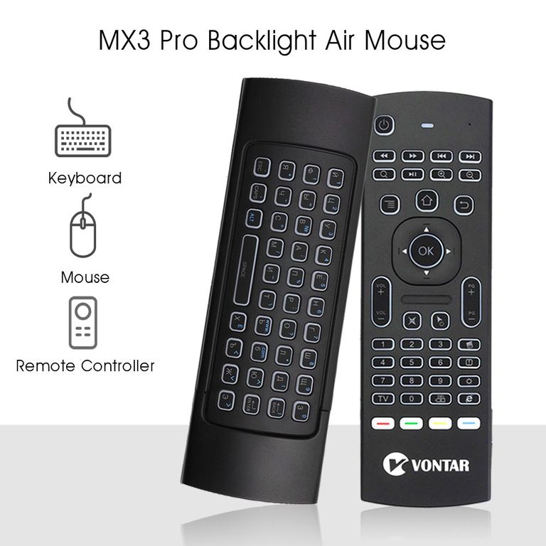 Обучаемый пульт MX3 VONTAR c AIR MOUSE(быстрая гироскопная мышь),с Англо/Русской клавиатурой и подсветкой. Это незаменимая вещь для владельцев смарт-приставок,т.к. родные пульты не очень удобны!