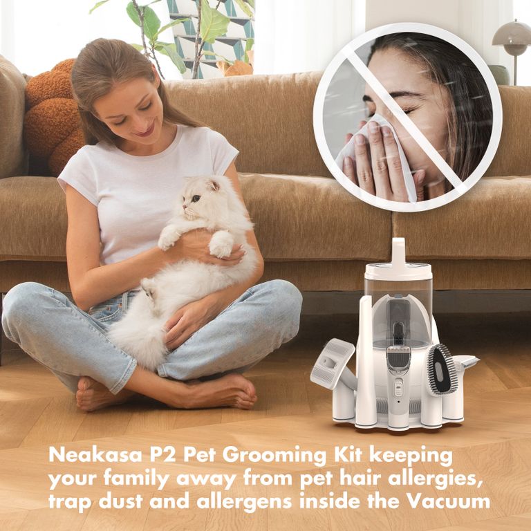 Профессиональный набор для ухода за животными Neakasa P2 Pro (Neabot P2 Pro) с вакуумным всасыванием с емкостью 2 л прост в использовании, эффективен и обеспечивает комфорт вашему питомцу и чистоту в доме без шерсти.Он содержит 5 проверенных насадок для ухода и собирает 99% шерсти домашних животных с помощью встроенного вакуума.