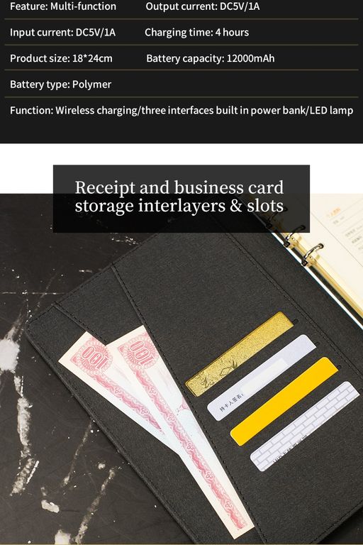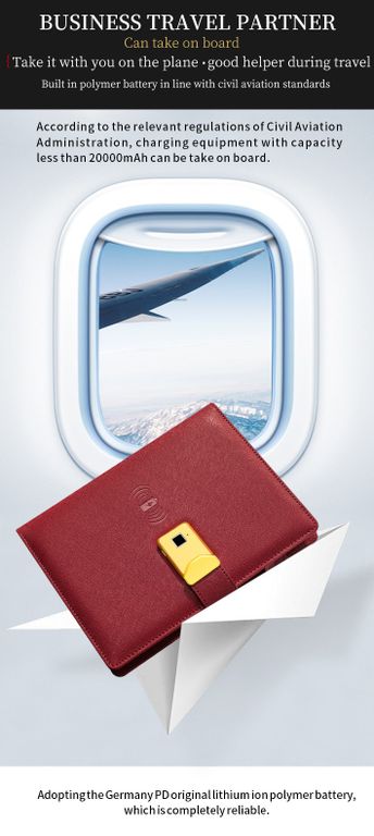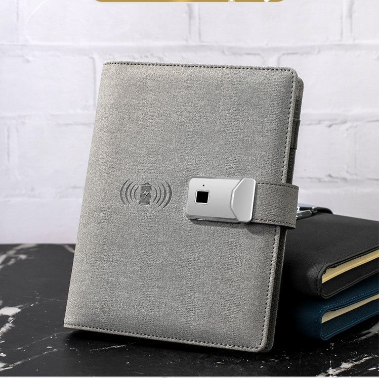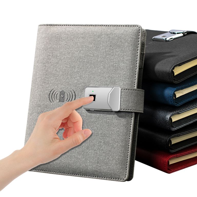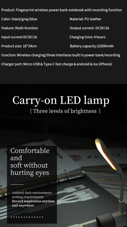 Ежедневник с отпечатком пальца, power bank, беспроводной и проводной зарядкой, лампой в подарочной упаковке -- идеальный подарок для делового человека, т.к. это незаменимый аксессуар при существующем темпе жизни.С помощью этого ежедневника Вы сможете зарядить смартфон или другие девайсы от встроенного powerbank, мощностью 12000 mAh. Сможете открывать замок ежедневника при помощи своего отпечатка пальца ( при необходимости - еще 2 человек). Иметь возможность работать при плохом освещении, используя встроенную лампу.