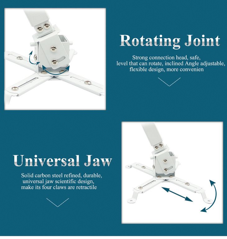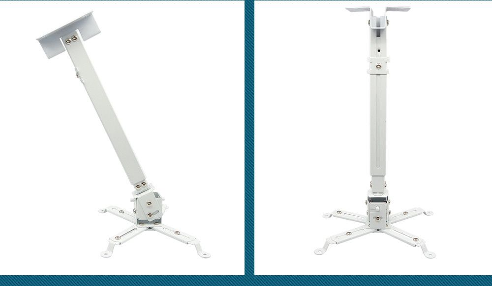 Универсальное настенно-потолочное крепление для проектора позволит надежно закрепить устройство к потолку под разными углами наклона и с радиусом вращения 360 градусов.