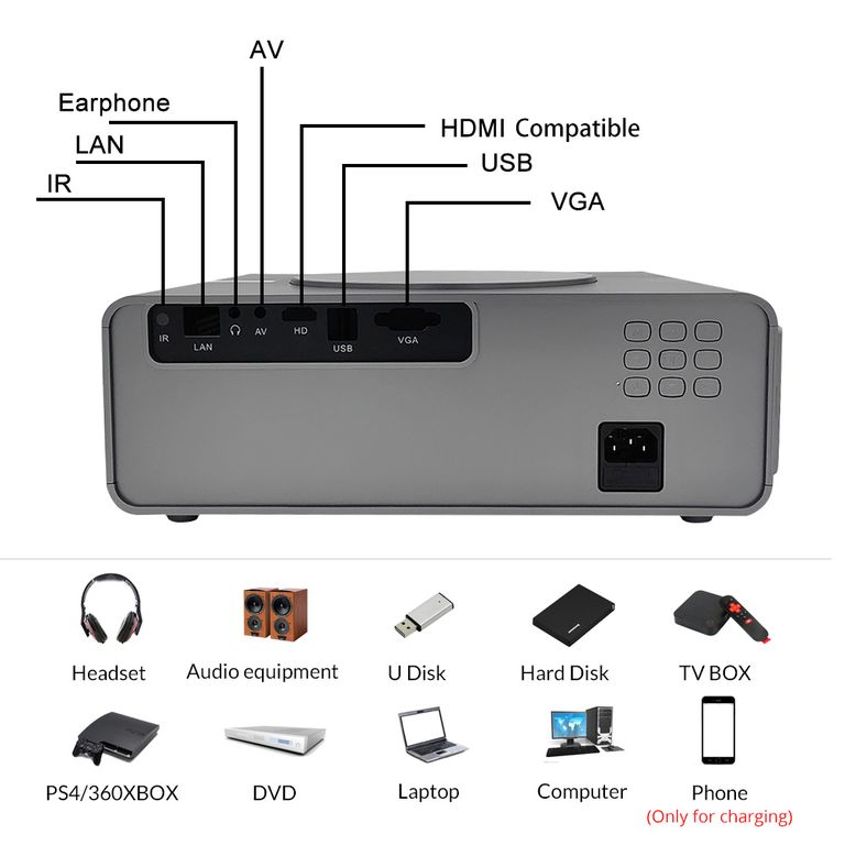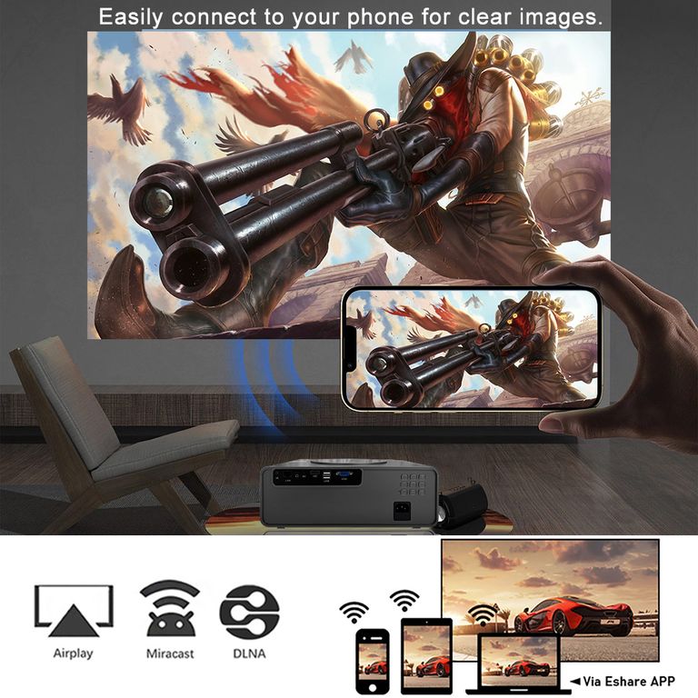 Q10w Plus может подключать компьютеры и телефоны Android/IOS через Wi-Fi Miracast или AIrplay.