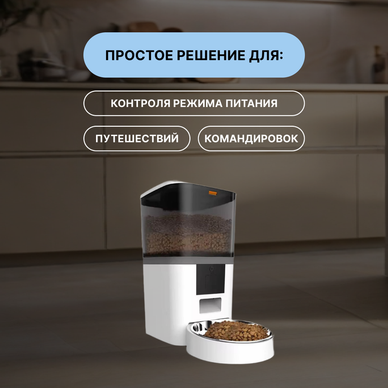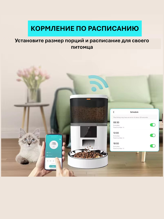 Вы можете запрограммировать дни недели, время кормления до 10 раз в сутки и определить количество порций за один раз ( до 20 порций).