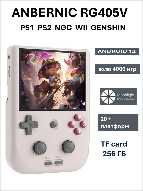Портативная игровая консоль ANBERNIC RG405V 128Gb+256Gb на базе операционной системы Android 12, оснащена 4-дюймовым сенсорным экраном с разрешением 640*480p.