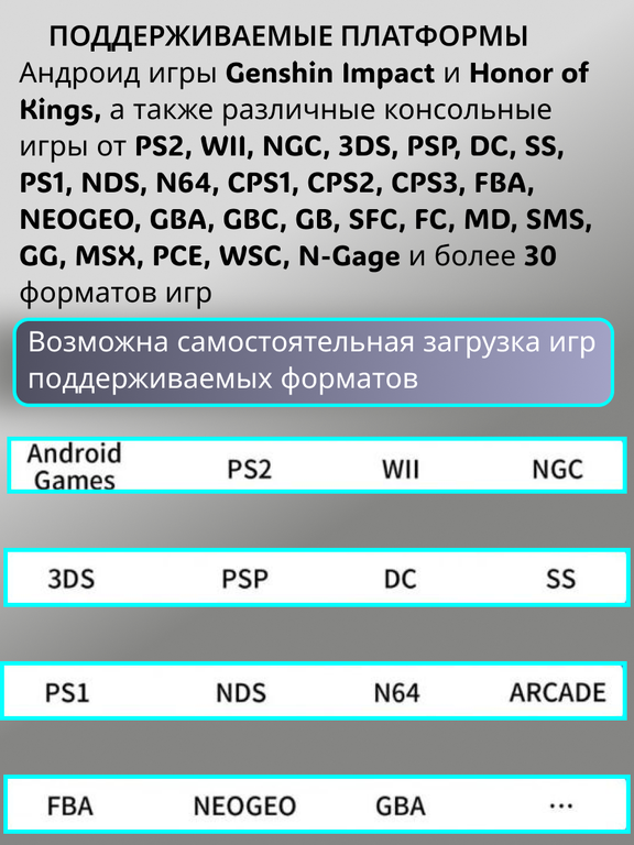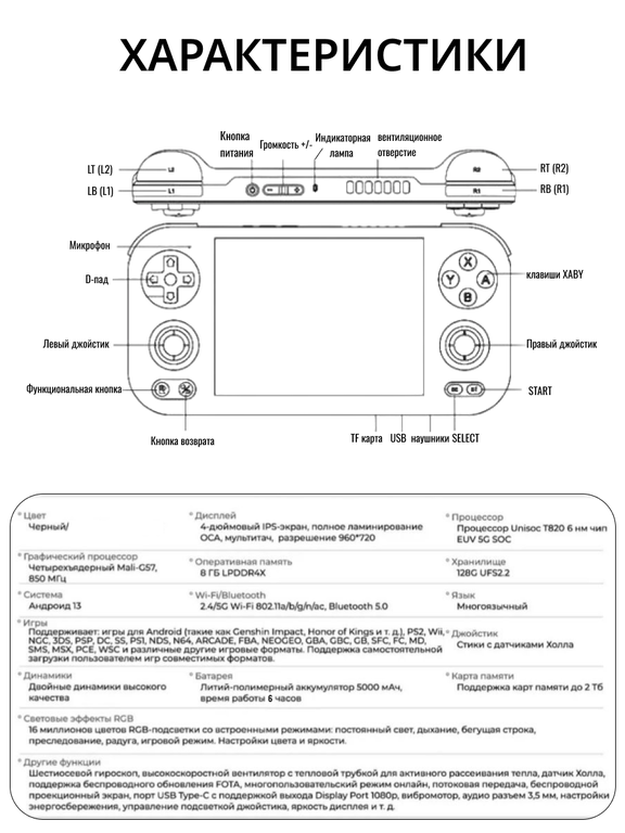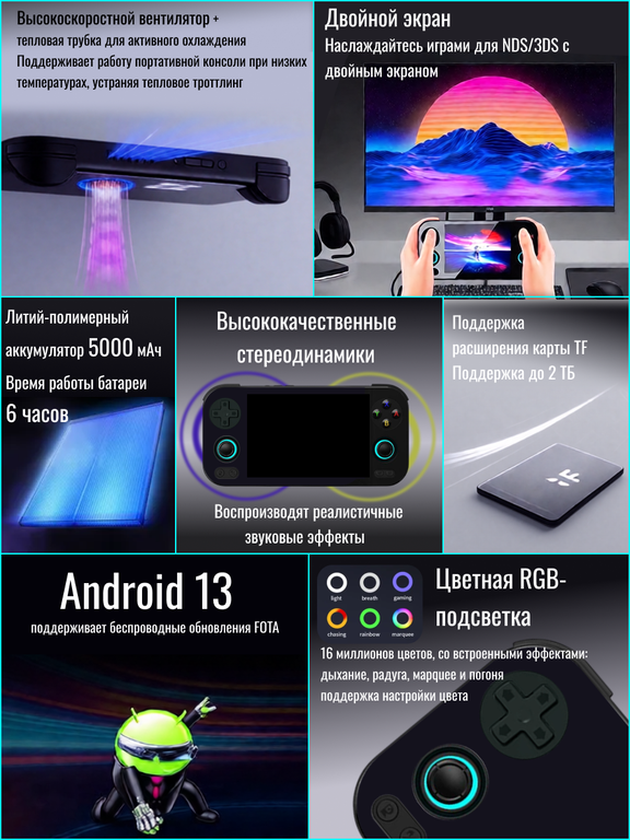 Anbernic RG476H — это мощная и универсальная портативная консоль, работающая на Андроид 13.0, с 4,7-дюймовым LTPS-дисплеем (разрешение 1280*960p) с технологией полного ламинирования,поддержкой мультитач и састотой обновления до 120 Гц. В комплекте с RG476H идет карта памяти 256Gb с 9000 игр.