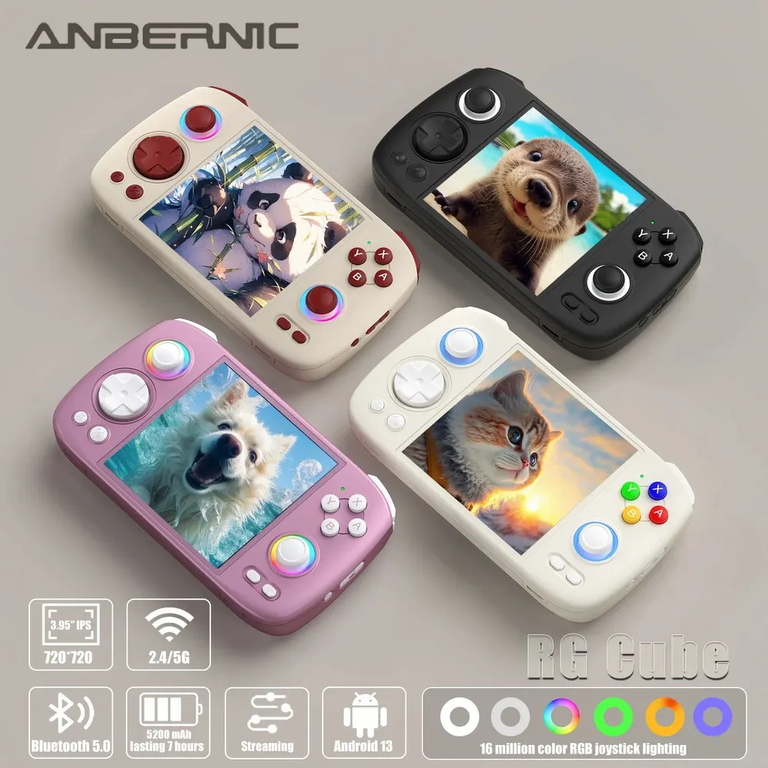 Портативная игровая консоль ANBERNIC RG CUBE 128Gb+256Gb на базе операционной системы Android 13, оснащена 4-дюймовым сенсорным IPS-экраном высокой четкости с разрешением 720*720p.