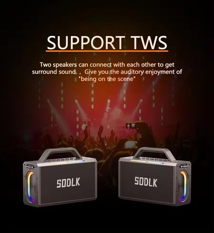 Функция Bluetooth позволяет соединить SODLK S1115 200W со смартфоном, смарт ТВ, смарт приставкой или PC без аудио кабеля. Также имеется AUX вход для соединения с этими устройствами при помощи аудио кабеля ( в комплекте). Есть входы для USB и TF-card для прослушивания MP3 музыки или минусов караоке песен.