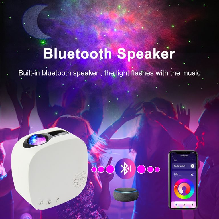 Светодиодный, лазерный проектор с динамиком ( функцией колонки) "Звездное небо" может проецировать реалистичное звездное небо на потолок и стены. Этот девайс подарит Вам полное погружение в звездную реальность. Светильник-проектор «Звездное небо” создаст замечательное настроение в детской, игровой комнате, а также во время взрослых вечеринок!