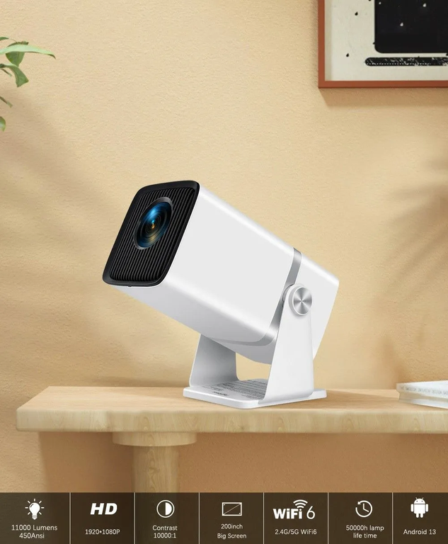 Встроенный Wi-Fi 6 2,4/5 Ггц позволяет транслировать контент на экран проектора по технологии Airplay/Miracast (iOS/Android).