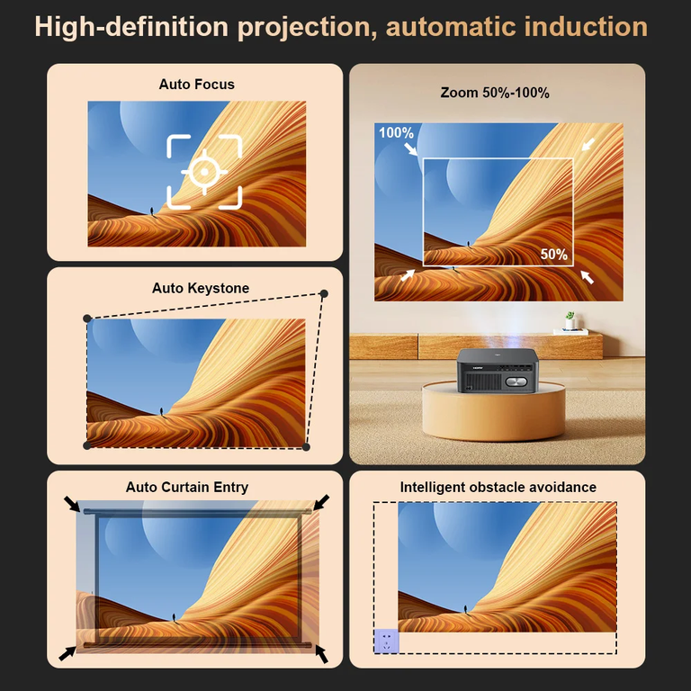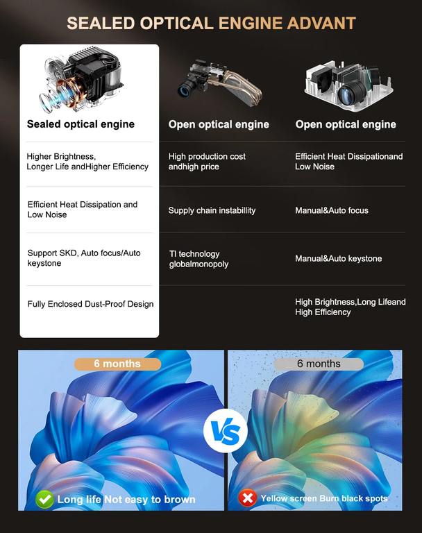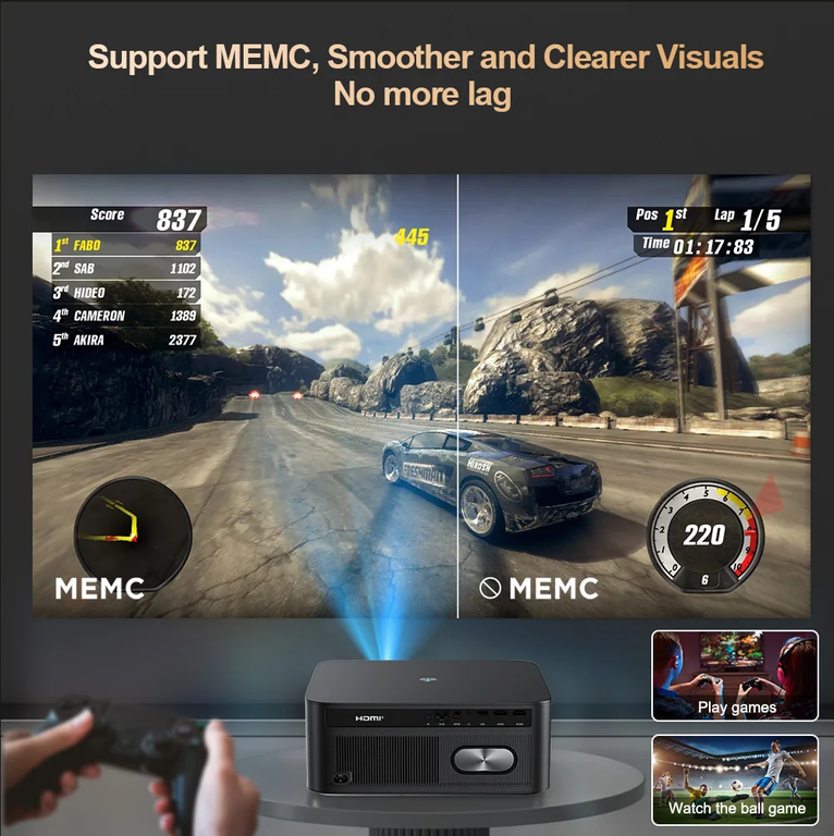 Проектор Thundeal TD98 Pro имеет закрытую оптическую систему и поддерживает проекционное расстояние от 1,4 до 7 м для достижения размера проекции от 50 до 300 дюймов.