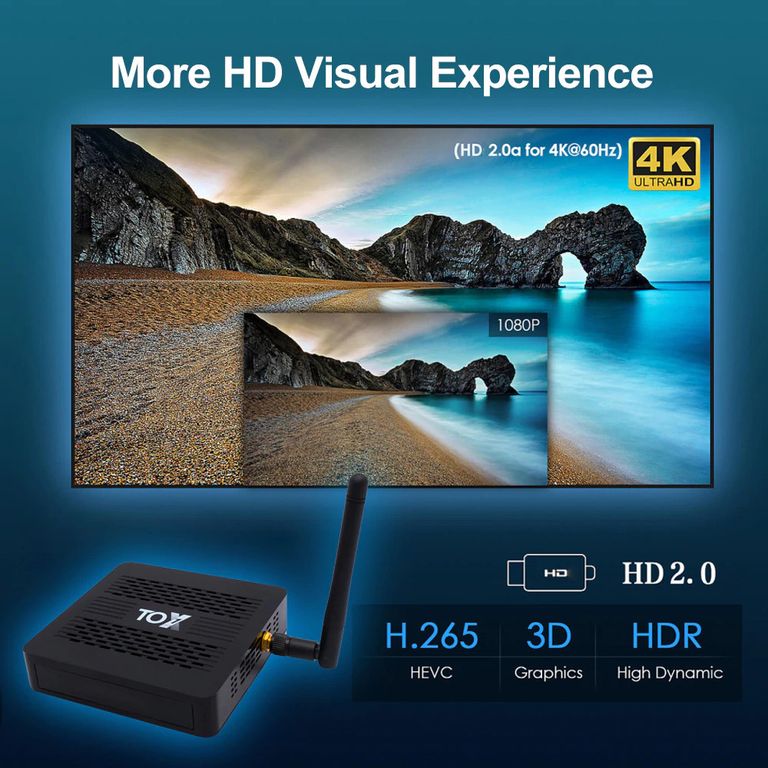 TOX1 4/32– мощная ТВ приставка с процессором Amlogic S905X3, графическим процессором Mali G31, 4Гб оперативной памяти и 32Гб встроенной. Устройство отличается внешней антенной для стабильной работы Wi-Fi, продуманной пассивной системой охлаждения и хорошо проработанной оболочкой операционной системы Android 9.0 с Root доступом, предустановленным Samba сервером и автоматической подстройкой частоты развертки под формат видео.
