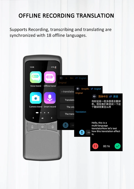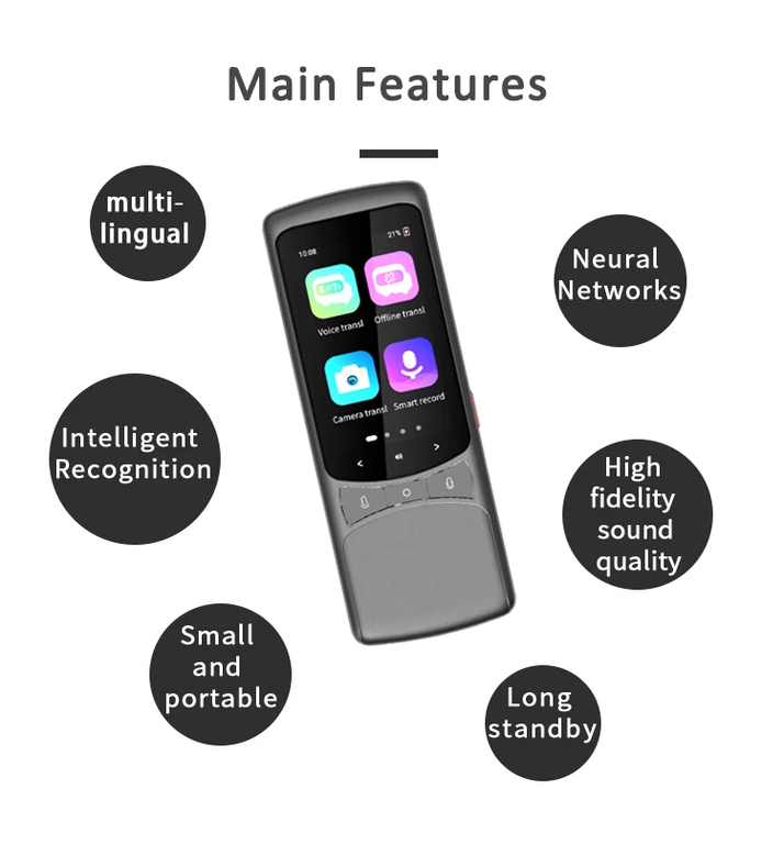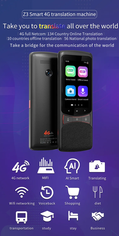 Карманный голосовой сенсорный переводчик 4G TRANSLATOR Z3 стирает все границы и барьеры в общении! Вы можете пользоваться им по Wi-Fi, через Сим карту 4G, а также Offline в путешествиях, бизнес поездках, при общении с зарубежными друзьями и покупках за границей, а также при изучении языка!