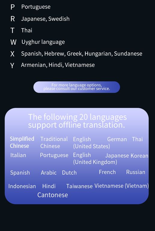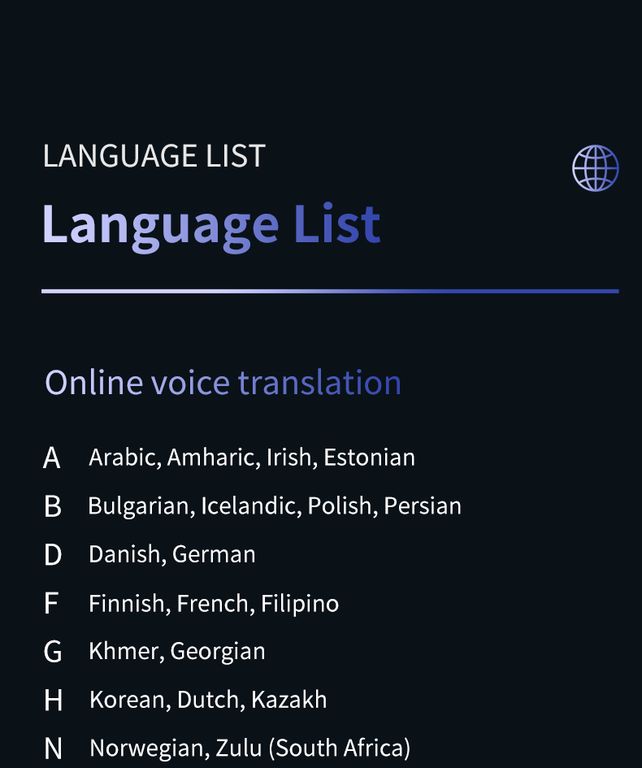 Умный голосовой переводчик 4G TRANSLATOR Z8 — это современное устройство, которое позволяет переводить на 142 языка. Также он имеет возможность автономного перевода ( Offline) на 20 языков, 14 из которых делают перевод с точностью 95%. Это традиционный китайский, испанский, русский, французский, немецкий, английский (Великобритания), японский, корейский, английский (США), китайский (упрощённый), вьетнамский, арабский, кантонский, тайский. 6 языков Offline с точностью 70%: голландский, итальянский, португальский, тайваньский, хинди, индонезийский.